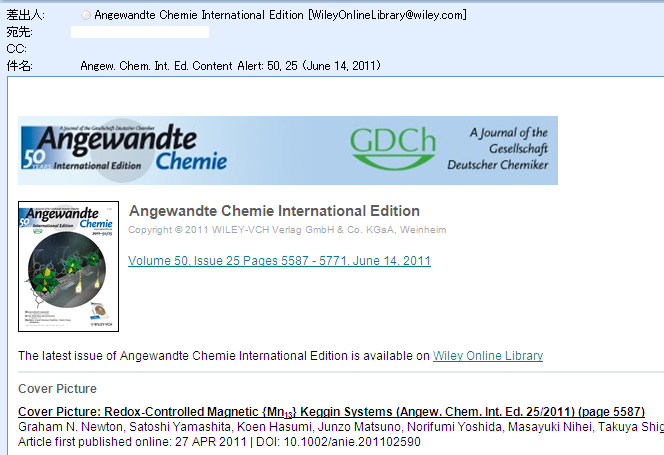 これだけです! その後は、最新号が出る都度、下のようなメールが自動的に配信されます。普段よくお使いになる、お気に入りのジャーナルがあればぜひお試し下さい。(ご利用は一切無料、何誌でもご利用いただけます)